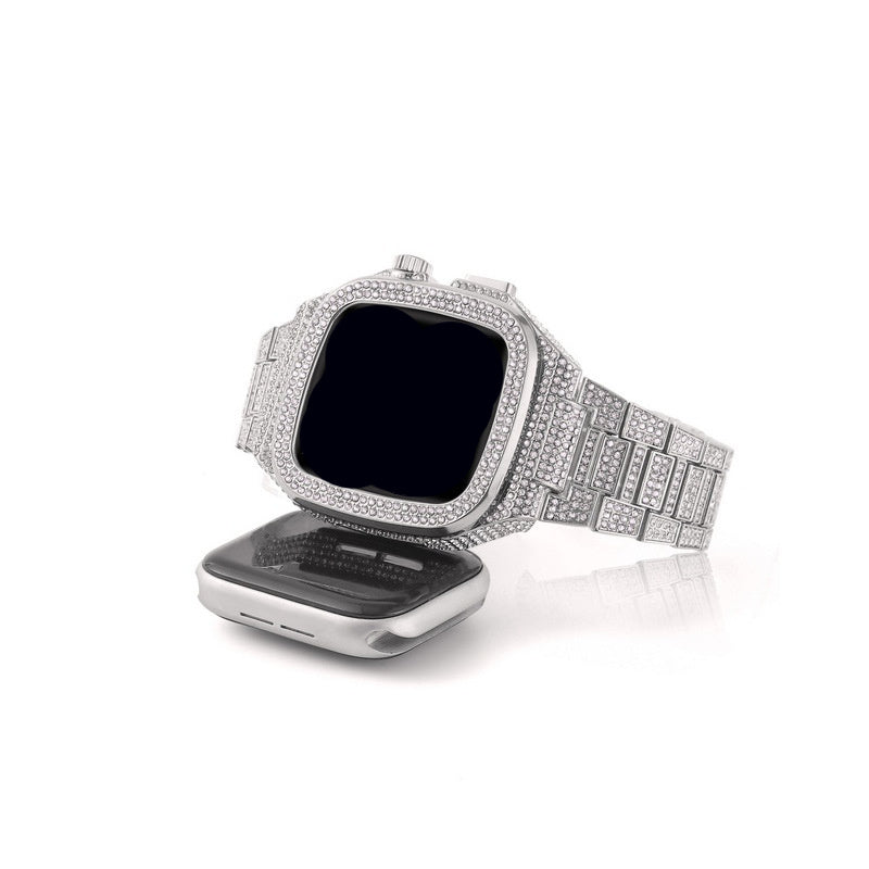 Смарт-часы с инкрустированным полностью бриллиантовым металлическим ремешком